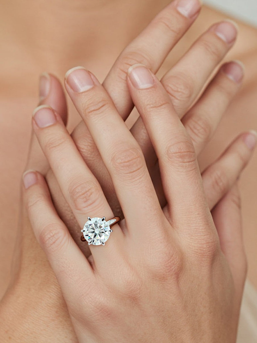 14K Gold Round Cut 3.0Ct Moissanite Solitaire Ring