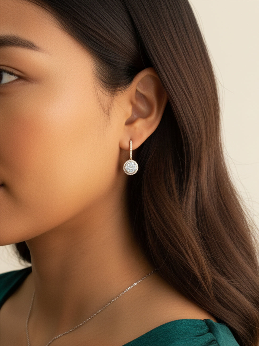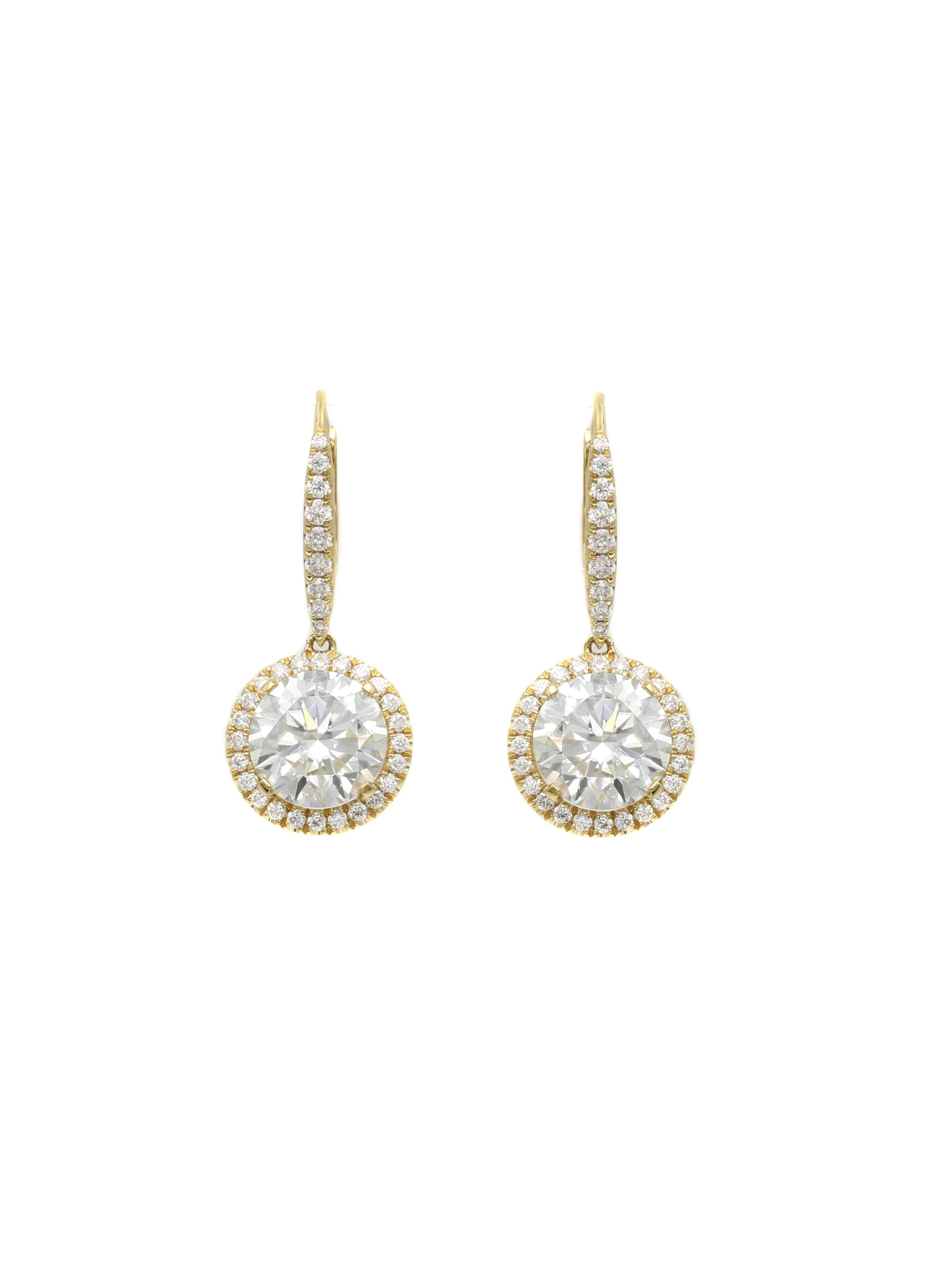 18K Yellow Gold Round Moissanite Halo Setting Drop Earrings