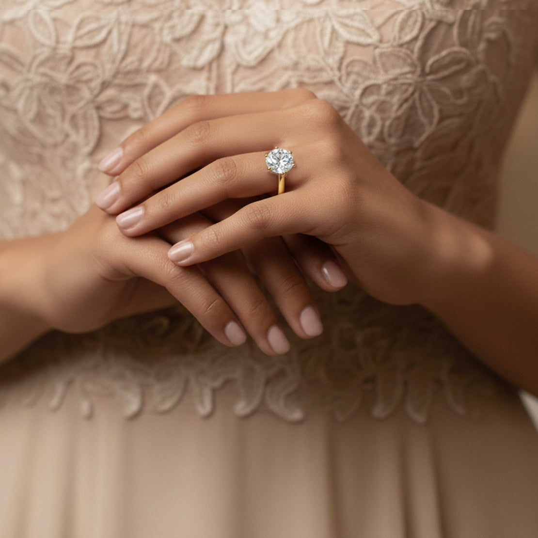 14K Gold Round Cut 3.0Ct Moissanite Solitaire Ring