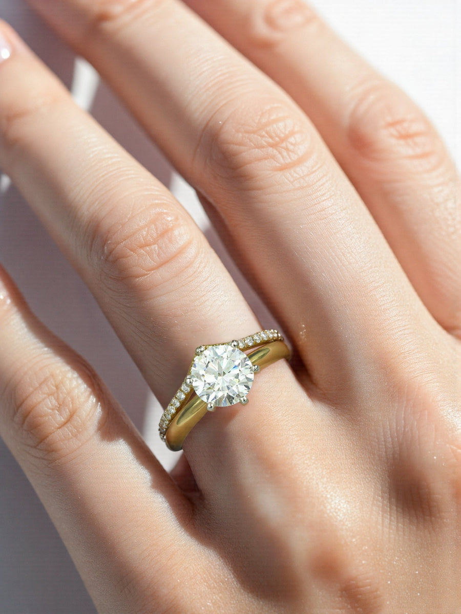 This stunning ring features a dazzling lab-grown diamond as its centerpiece, radiating brilliance and ethical beauty. The band is adorned with natural diamonds, adding timeless elegance to this harmonious blend of innovation and tradition.