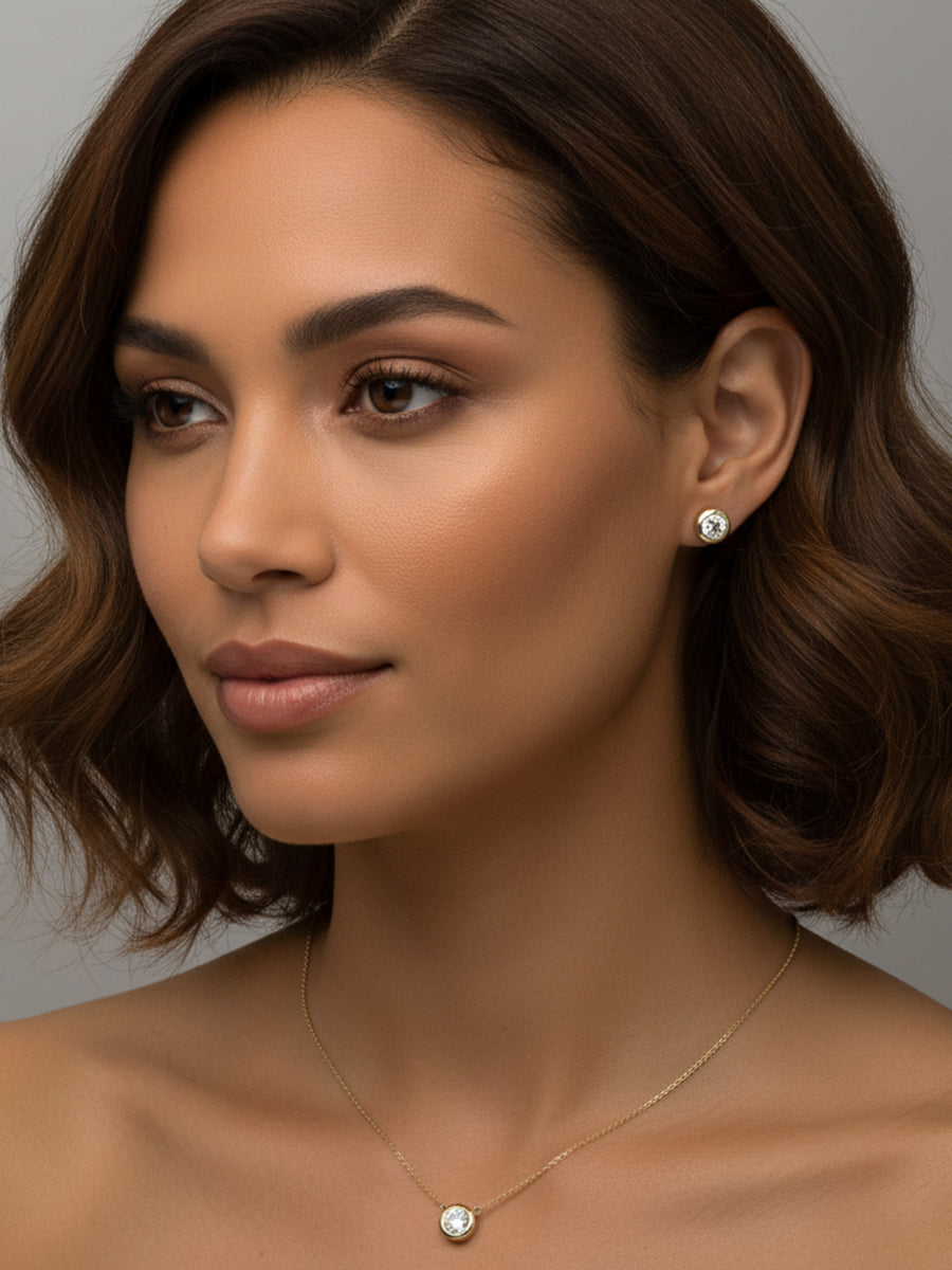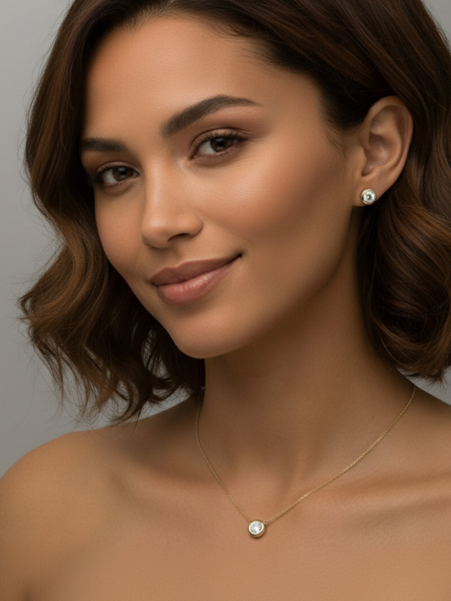 18K Solid Gold Moissanite Bezel Setting Necklace
