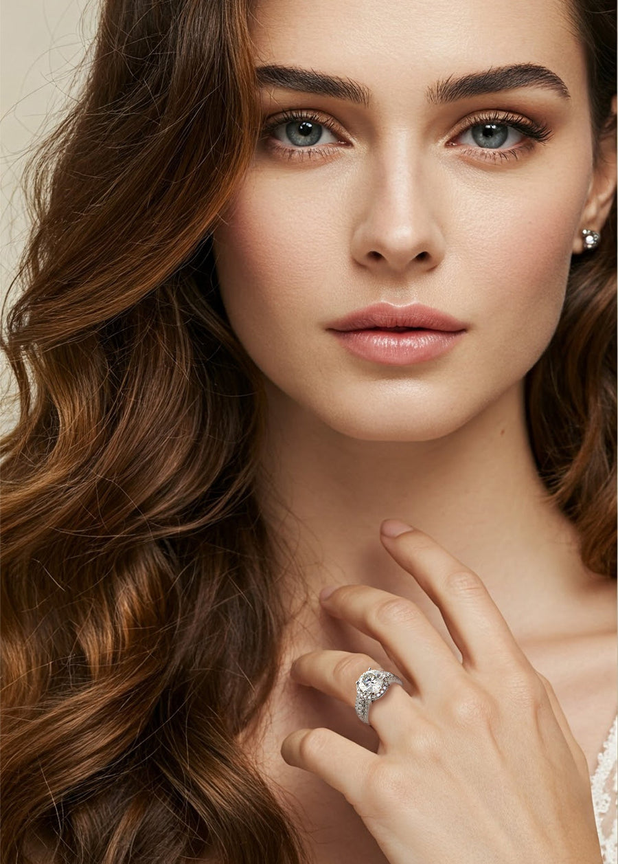 Alternating round diamonds climb up to the center stone of your choice, hugged by delicate milgrain and ribbons of accent stones.