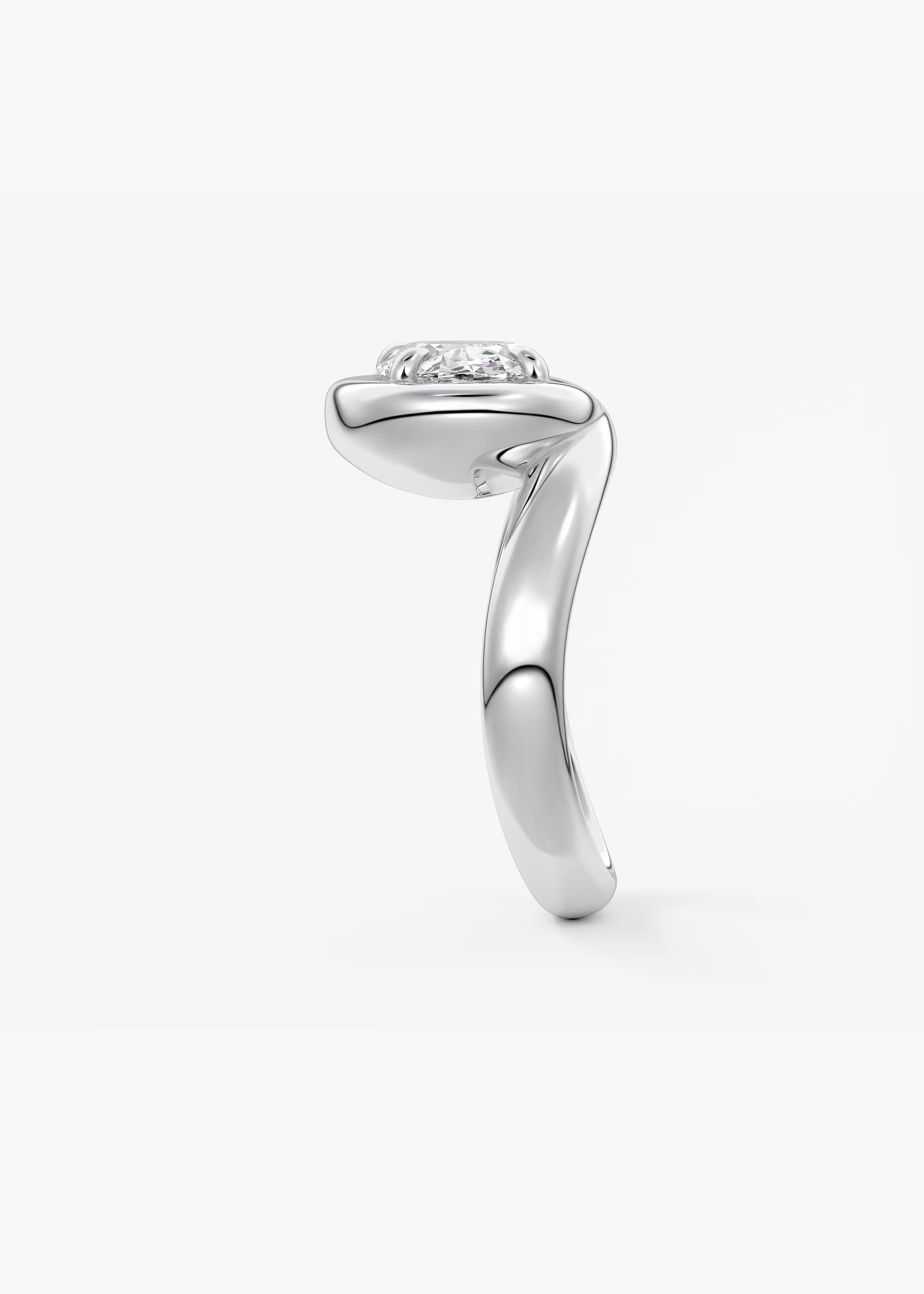 A modern solitaire engagement ring design featuring a prominent Oval-shaped center stone secured in a sleek bezel setting, with a smooth, polished band that enhances its contemporary elegance, creating a refined and sophisticated profile.