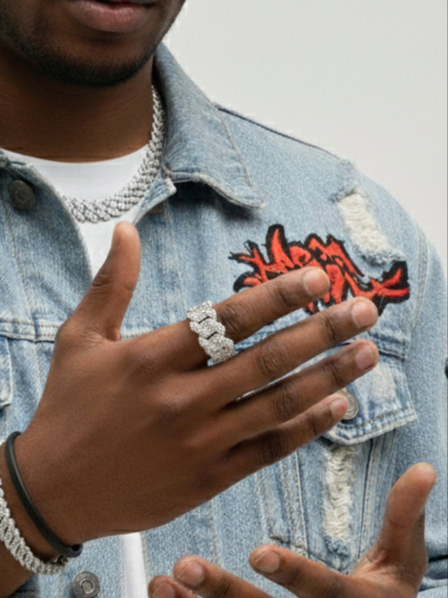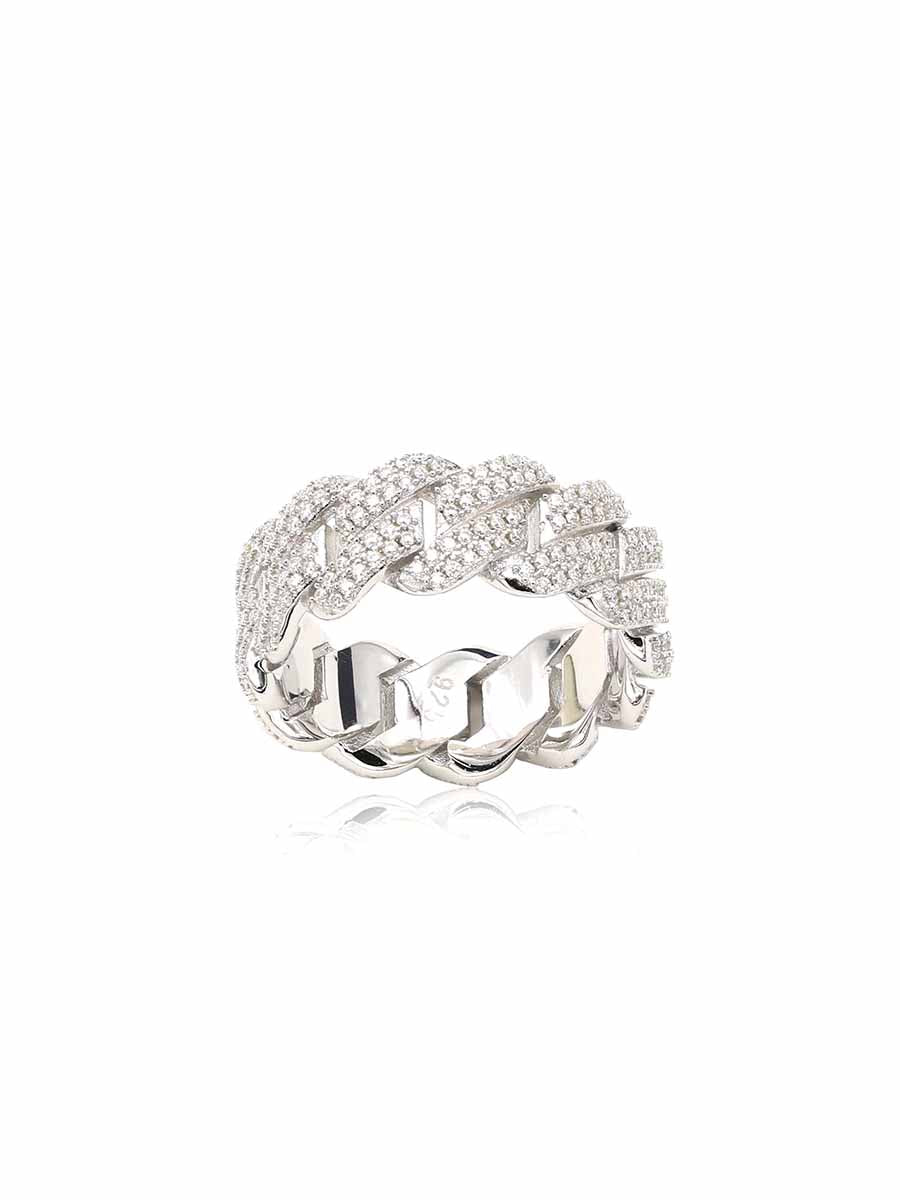 Our pavé Cuban link ring, an essential piece for every jewelry collection, will make a striking impression. This contemporary item, which is made of shiny sterling silver and is modeled after hefty chain links, is sure to turn heads with its stunning sparkle and sparkling diamonds that grace each link.