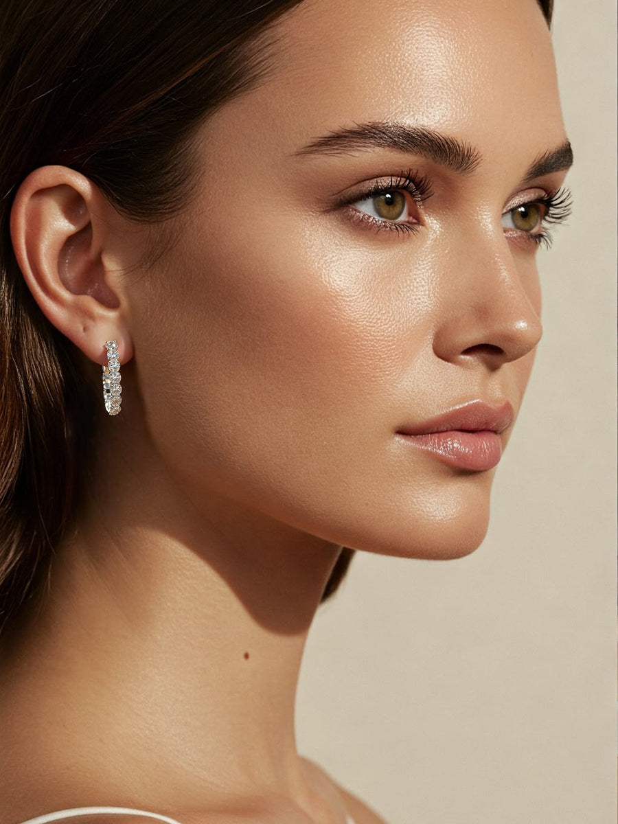 14K Solid Gold Lab-Grown Diamond Hoop Earrings