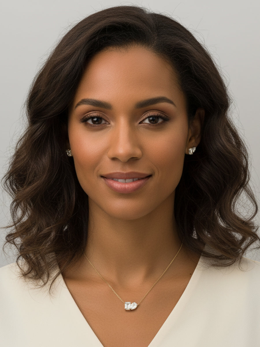 14K Solid Gold Toi et Moi Moissanite Pendant Necklace