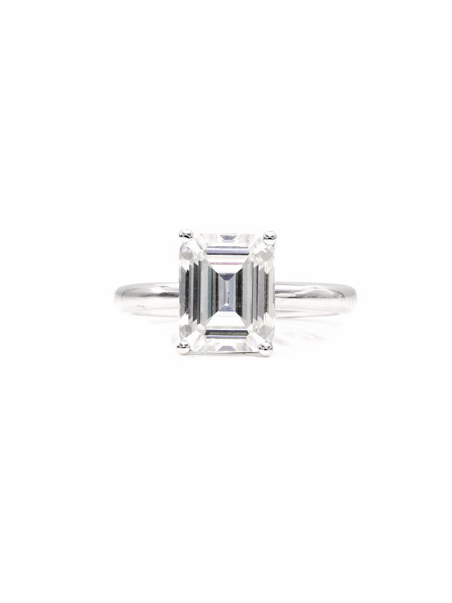 925 Silver 3.0Ctw. Emerald Cut Moissanite Ring