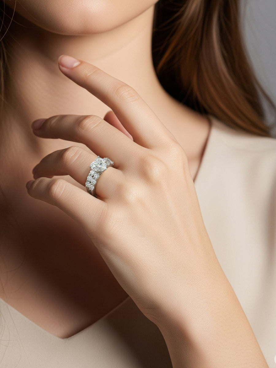 This stunning 925 silver engagement ring features a 3.43ct heart-cut Moissanite at its center, offering a brilliant sparkle that rivals diamonds. Its double band design adds a touch of elegance and modern flair, making it a perfect symbol of eternal love.