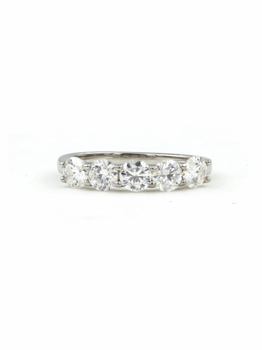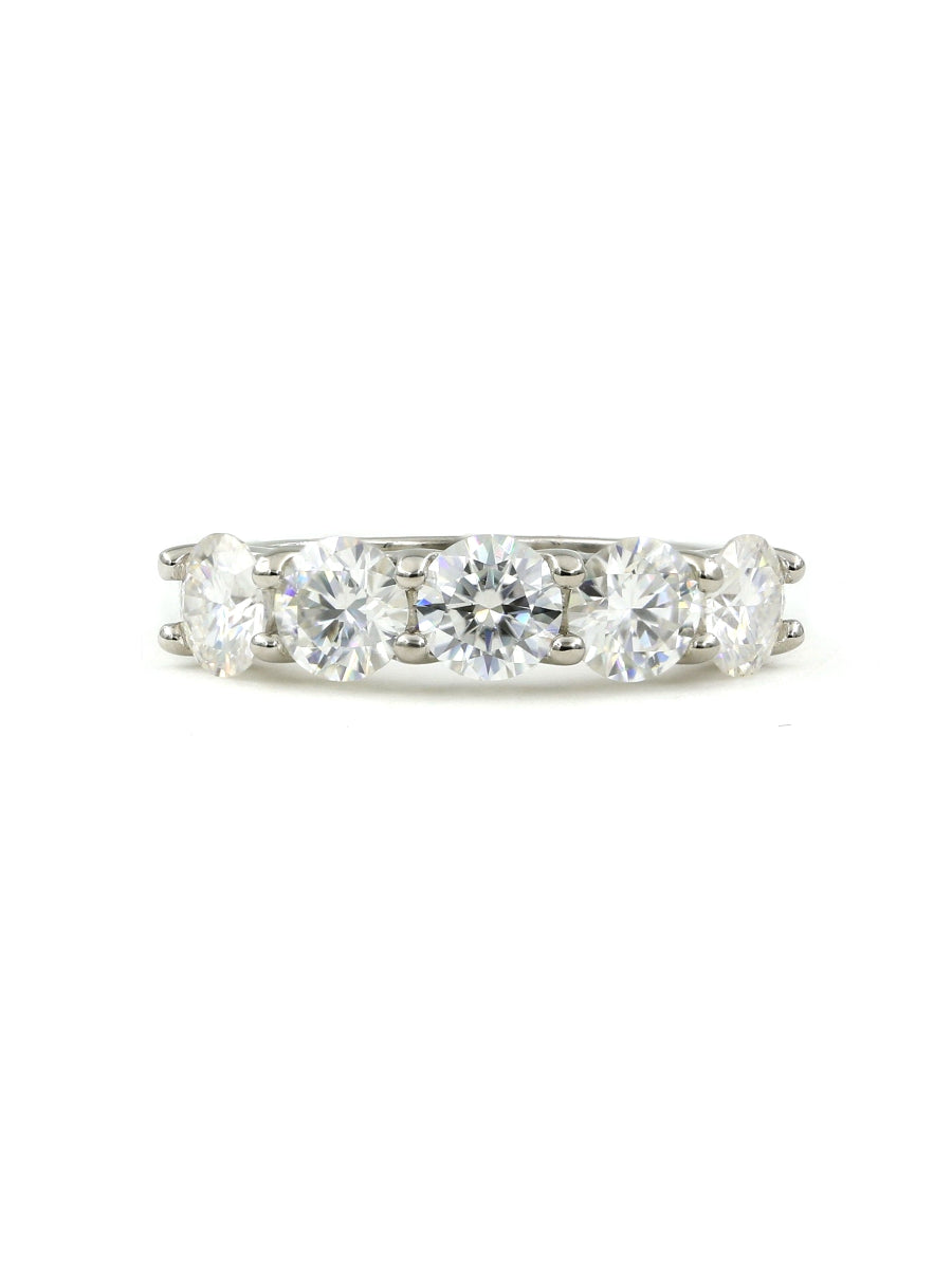 925 Silver Five Stone Moissanite Wedding Band Ring