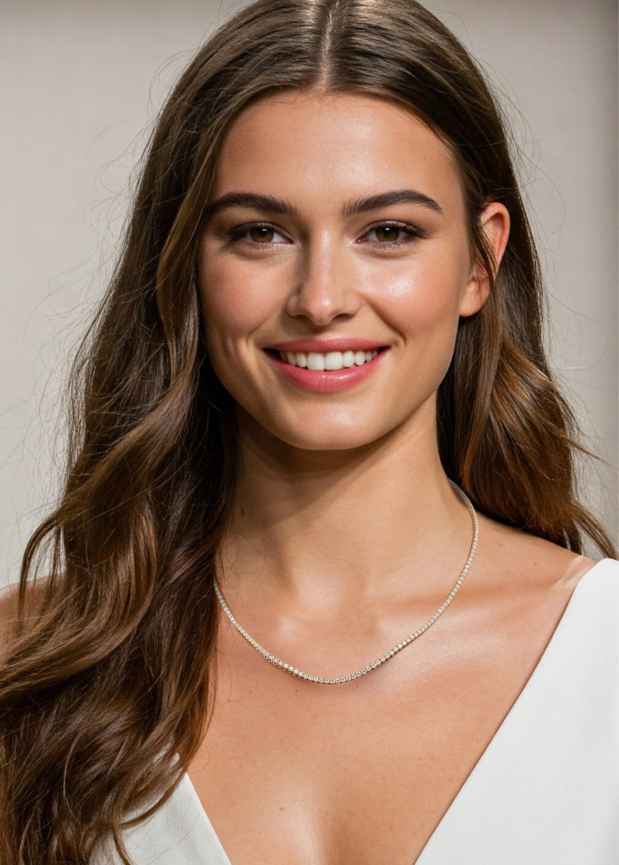 The line setting on this finely made tennis necklace forms a continuous row of moissanite. The necklace's length is 16 、18 inches , giving it a trendy, glam appearance.
