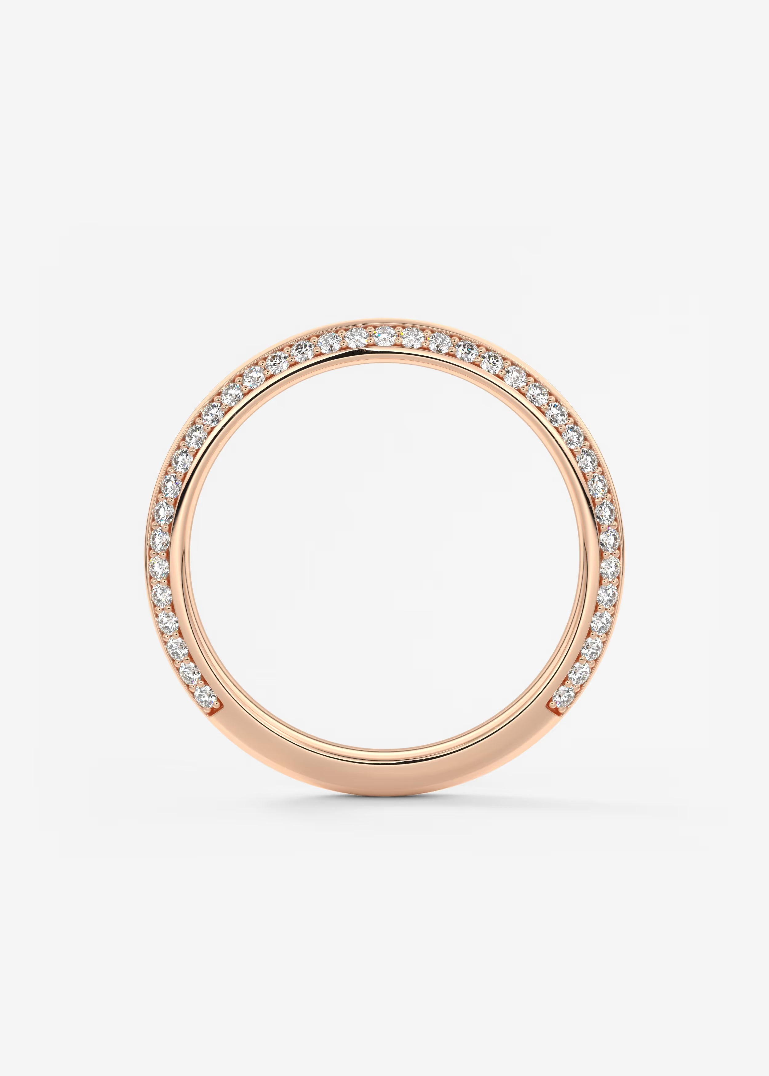 A polished gold band encircled with pavé‑set lab‑grown round diamonds, creating a seamless line of brilliance from every angle. The slim, elegant profile makes it a timeless choice for weddings, anniversaries, or refined stacking styles.