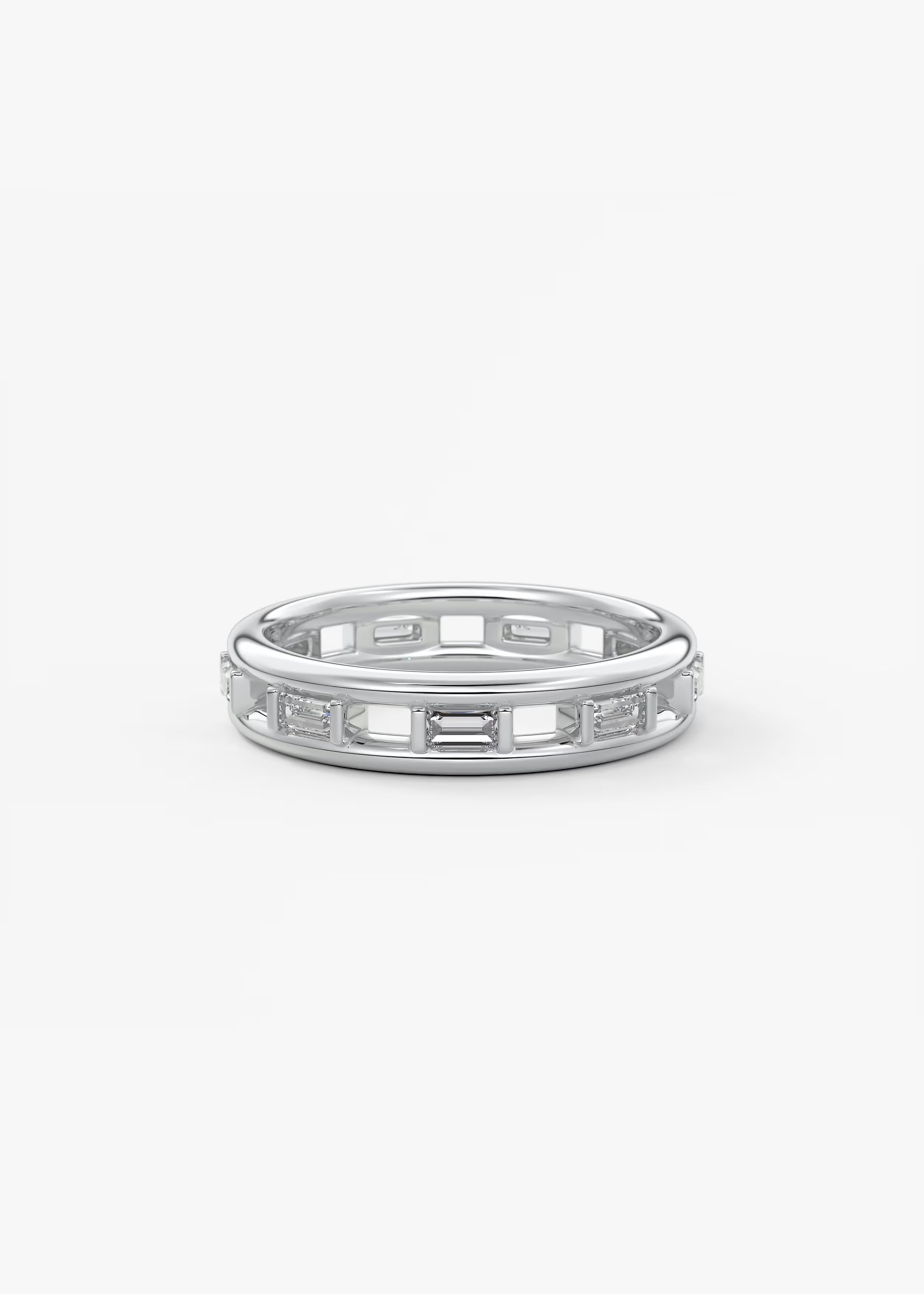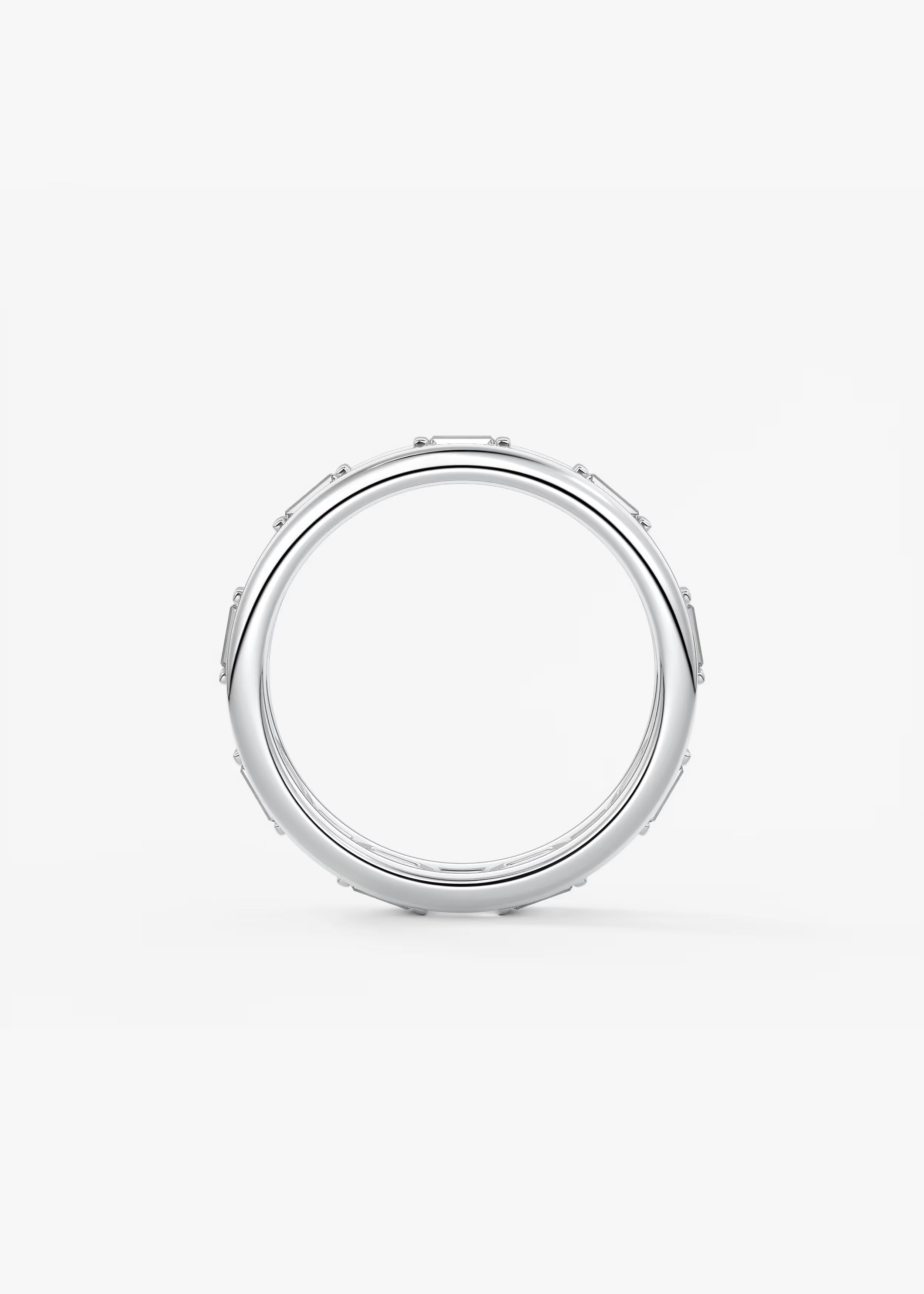 A polished gold band designed with clean geometric cutouts, each set with square and rectangular lab‑grown diamonds for a structured, contemporary look. The balanced pattern and modern silhouette make it a standout piece for everyday style or stacking.