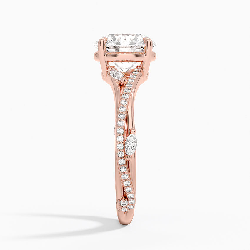 Split Vine Marquise Cluster Round Lab Grown Diamond Center Engagement Ring