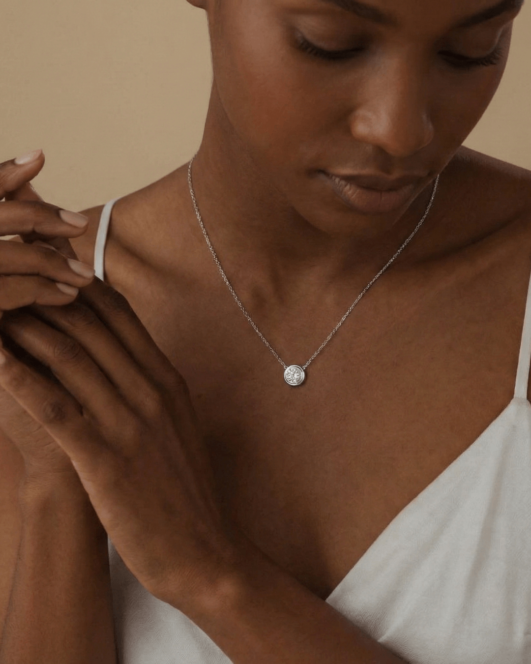 925 Sterling Silver Moissanite Bezel Setting Necklace