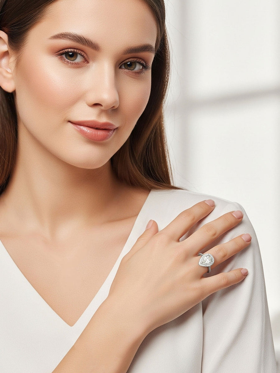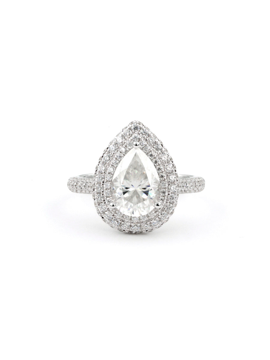 14K Gold Pear Cut Moissanite Double Halo Setting Ring