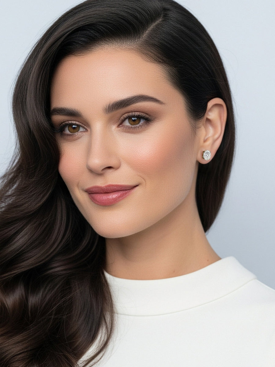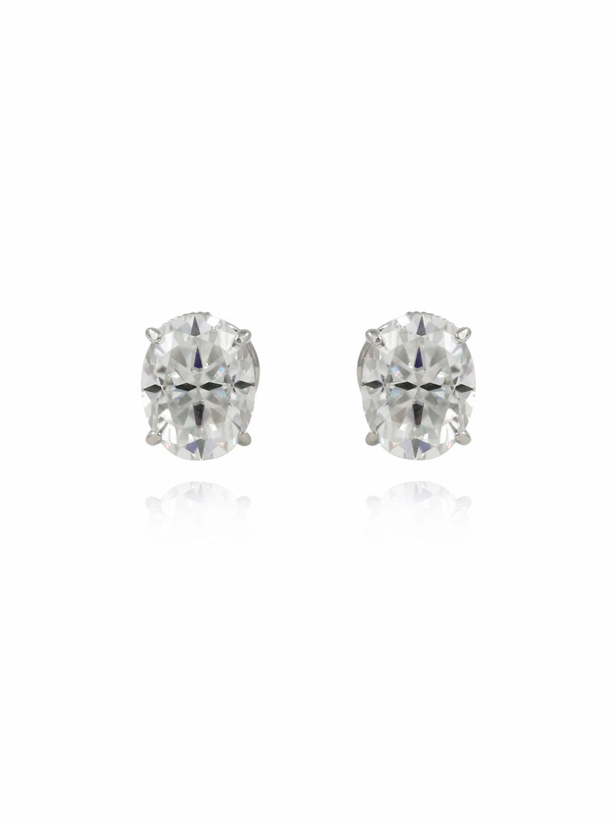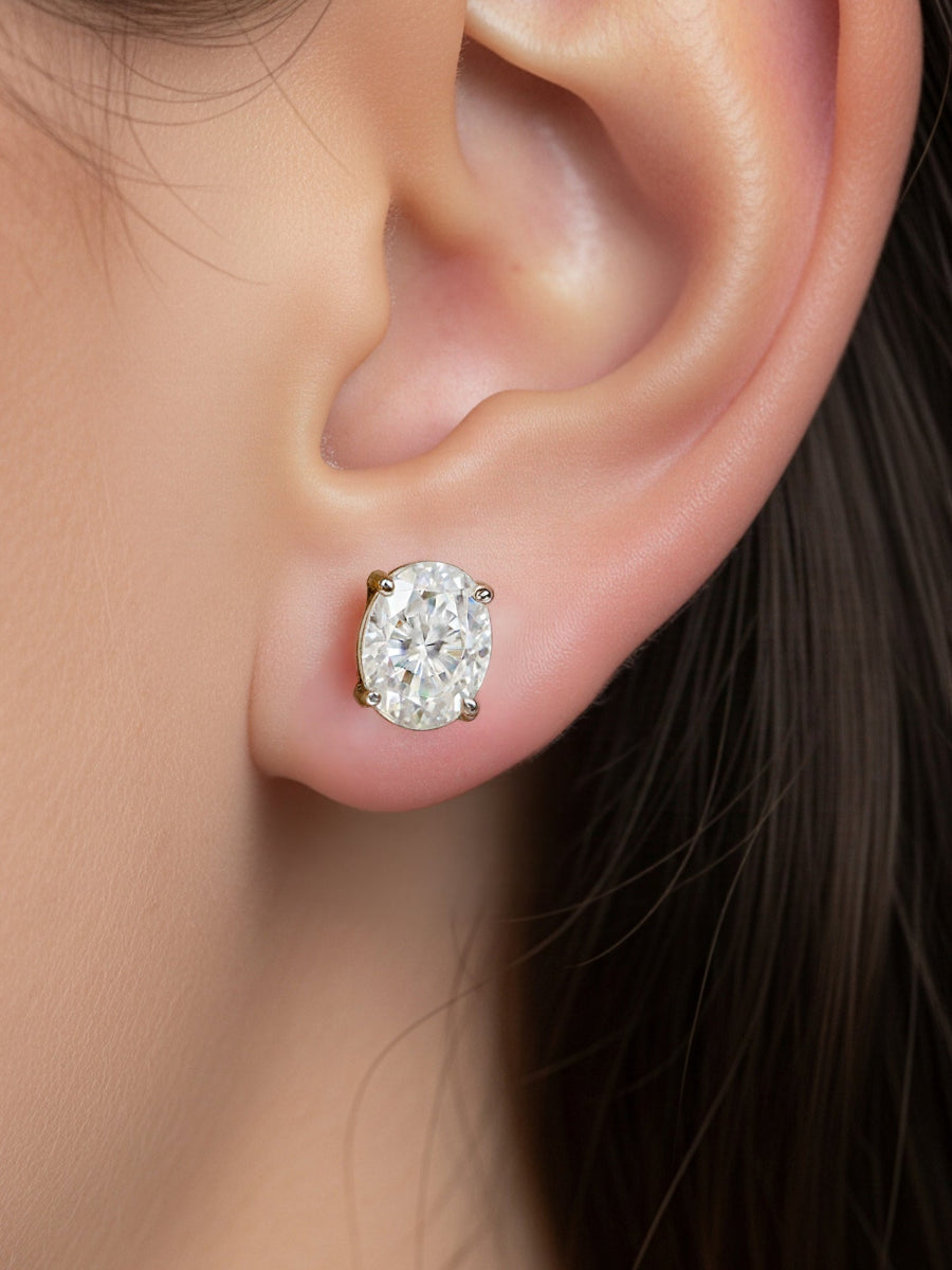 These sleek and eye-catching stud earrings feature glistening oval-shaped moissanite secured by screw backs.