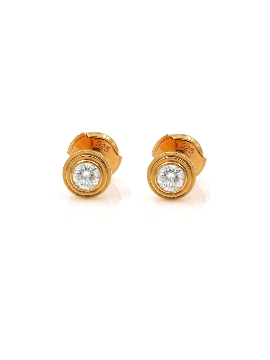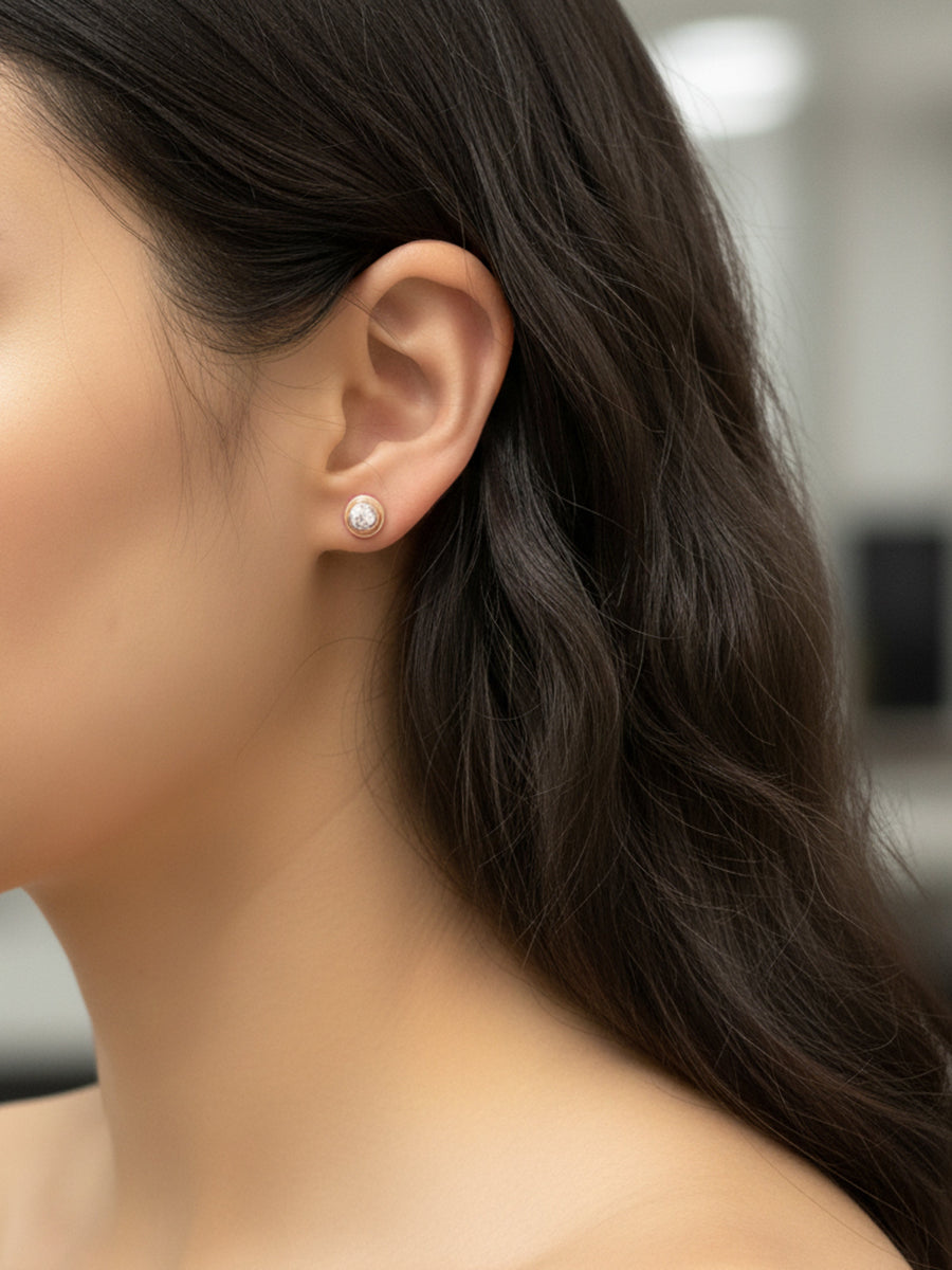 These unique earrings blend the sleek elegance of bezel settings with the feminine beauty of round lab-created diamonds.