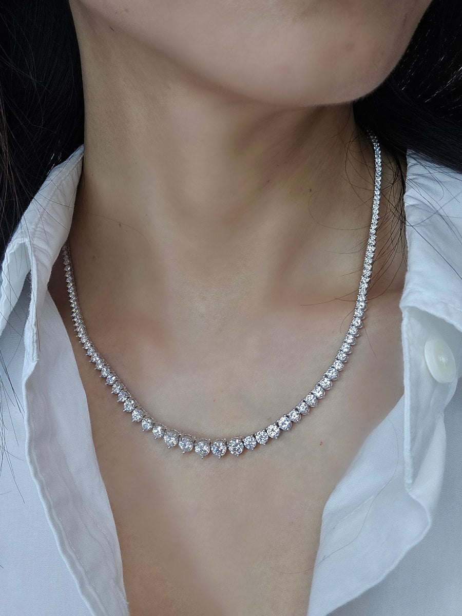 925 Silver 2-5mm Moissanite Graduated Tennis Necklace