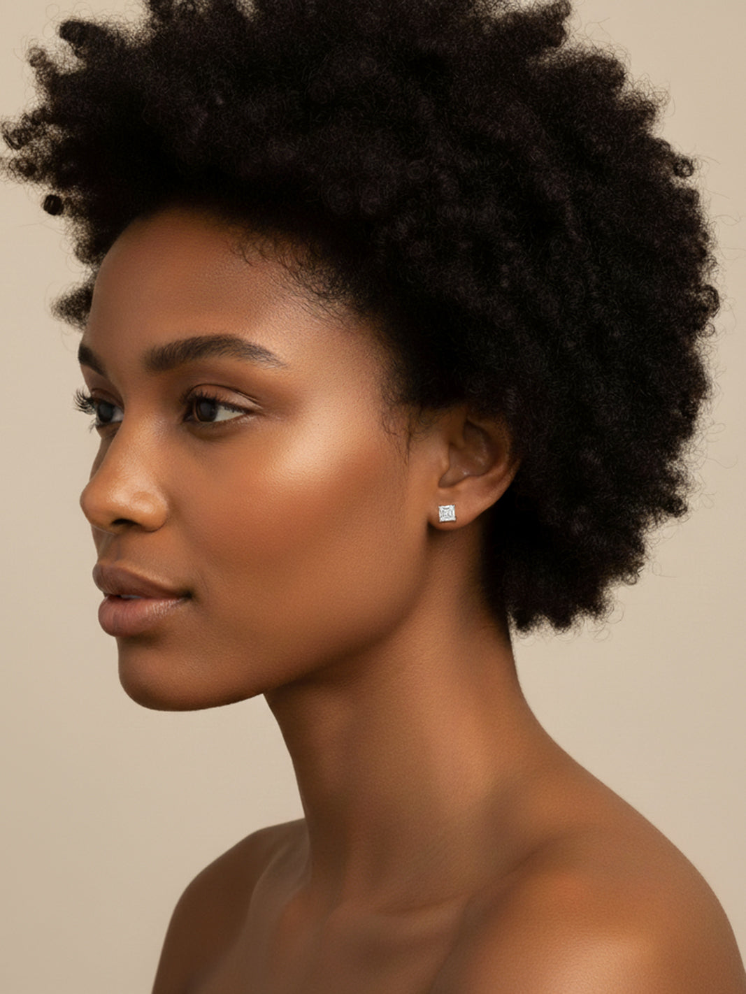 Experience the classic charm of these four-prong basket set stud earrings by Asscher. This timeless style has a low-profile setting that holds the studs firmly in place and is both fashionable and practical. These studs, which are made of 925 silver, are ideal for daily wear because they add a classy touch without sacrificing comfort or longevity.